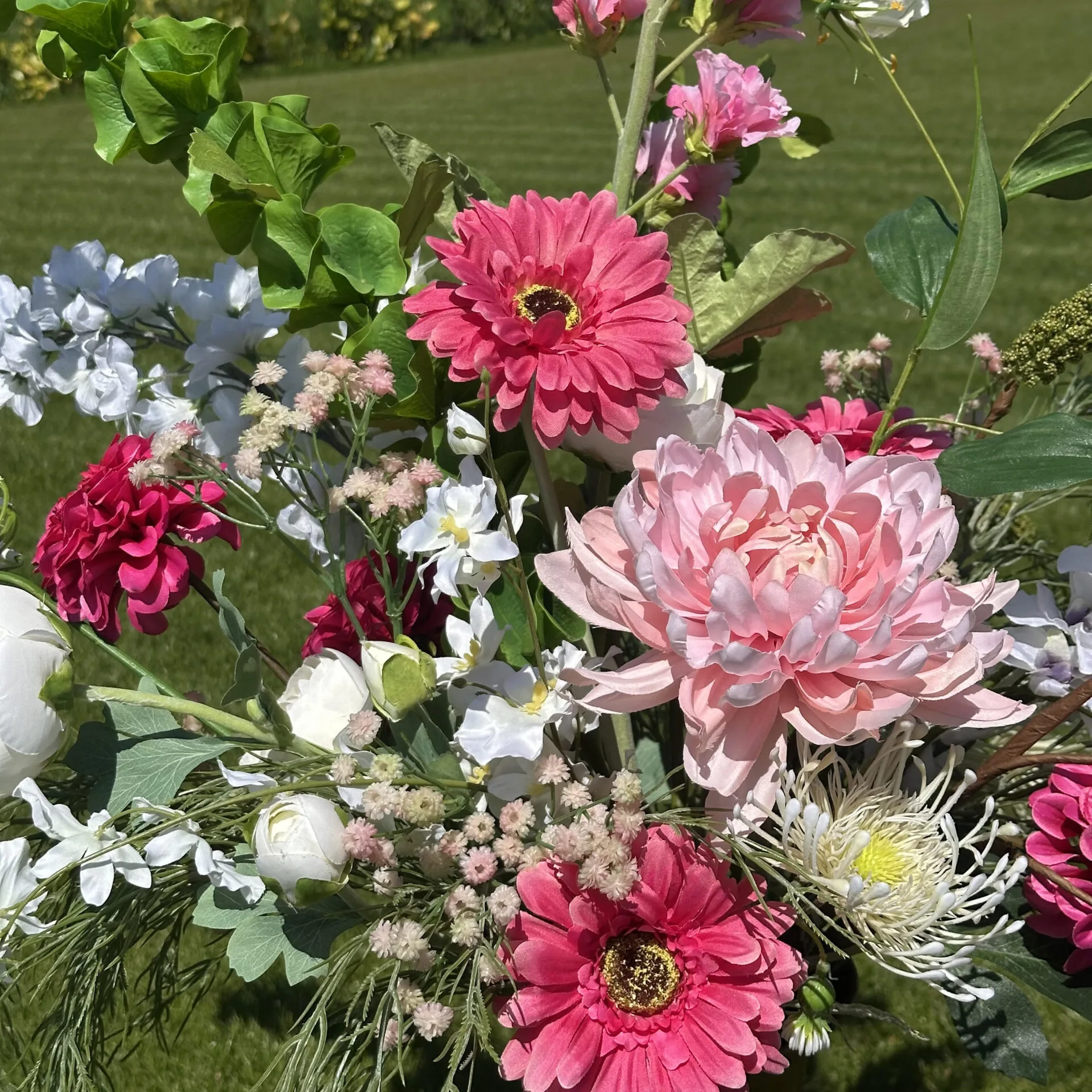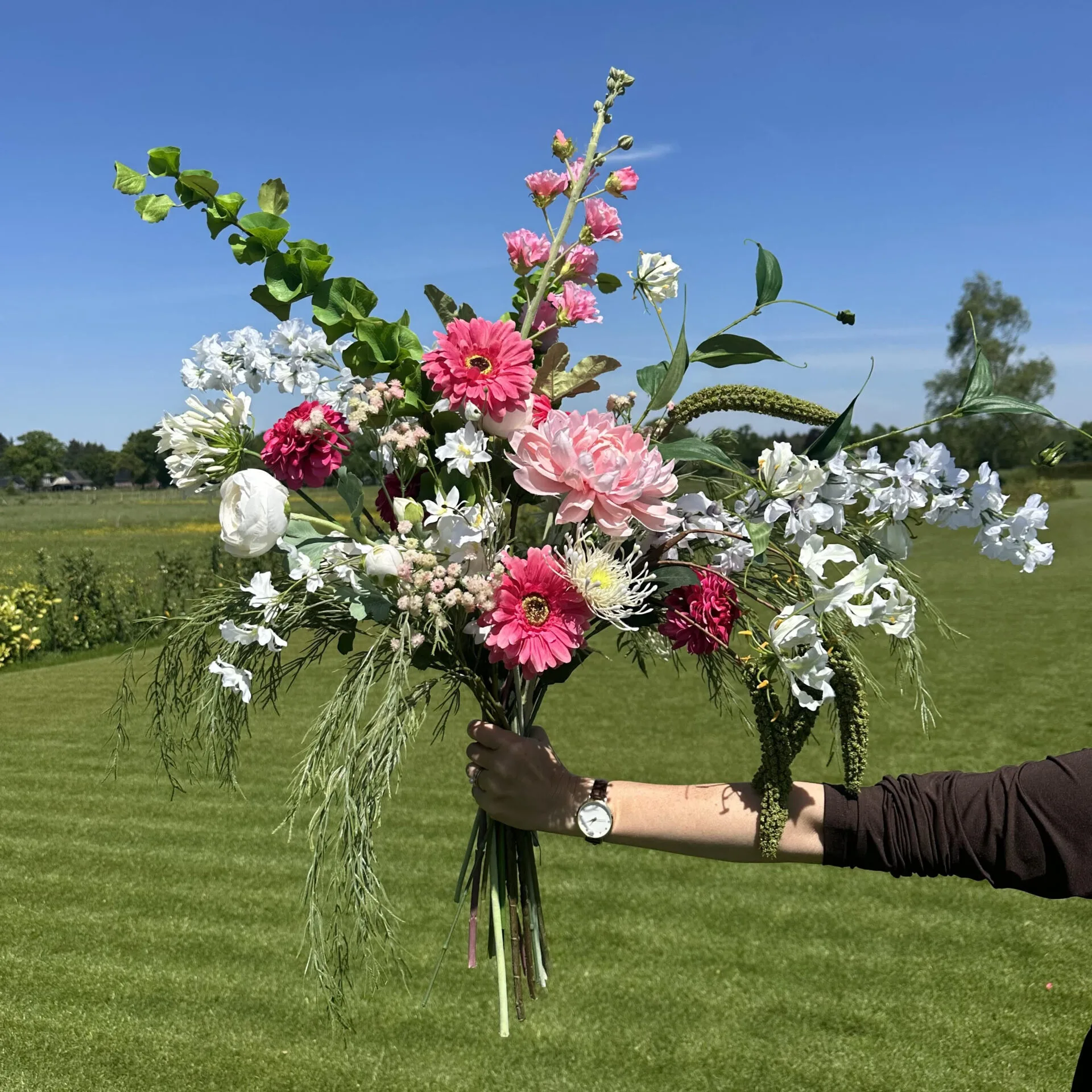 Bloemstuk Holly is een fris en zomers arrangement met witte en roze bloemen, gecombineerd met mooi groen. Het heeft een zachte uitstraling en past goed op tafel of in de showroom. Een rustig en natuurlijk bloemstuk dat sfeer brengt in elke ruimte.