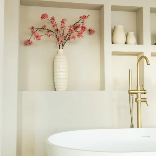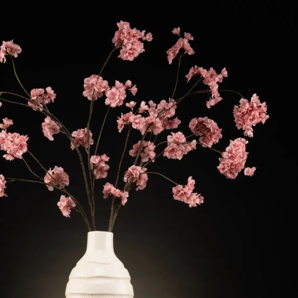 Bloemstuk Lauri brengt een subtiele romantiek in elk interieur. De sierlijke roze bloesemtakken vormen een prachtig contrast met de elegante, witte geribbelde vaas. Dit tijdloze en verfijnde arrangement straalt rust en harmonie uit, een echte eyecatcher voor iedere ruimte!