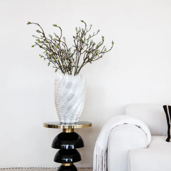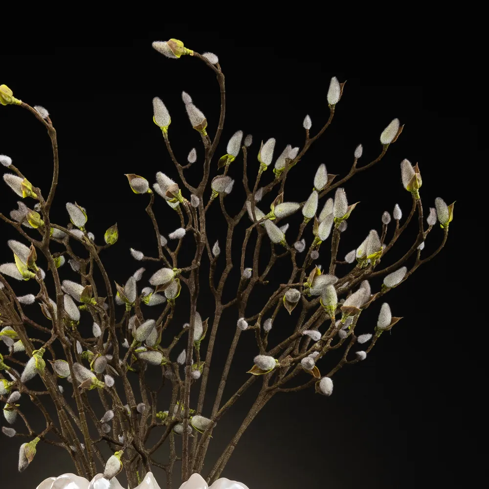 Bloemstuk Lima straalt rust en natuurlijke eenvoud uit. De sierlijke wilgenkatjes geven een subtiele, frisse uitstraling en zorgen voor een sfeervol accent in elk interieur. Geplaatst in een glanzende, golvend gevormde vaas, vormt het een stijlvolle blikvanger die moeiteloos past in zowel moderne als klassieke interieurs – zonder onderhoud, maar met een verfijnde look.