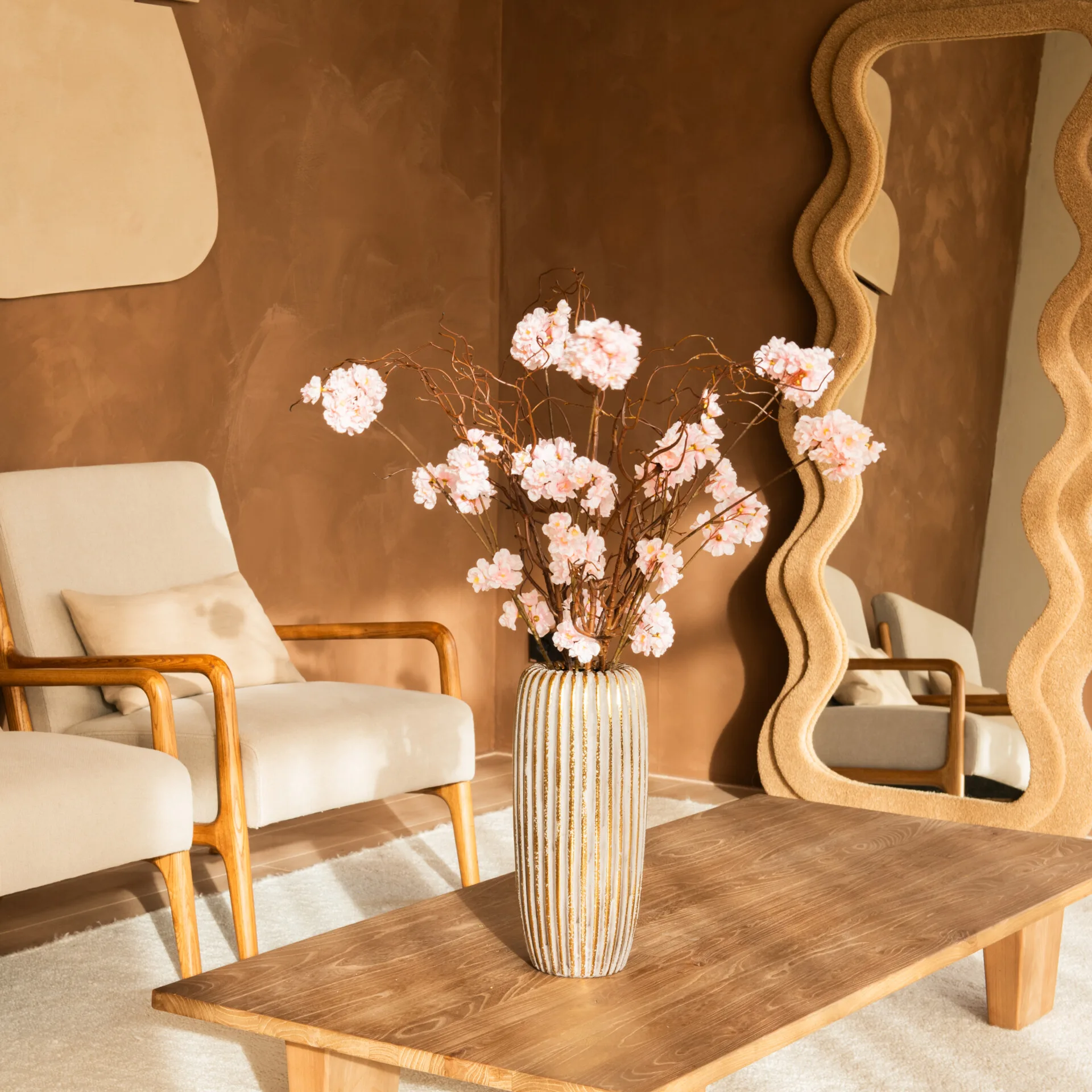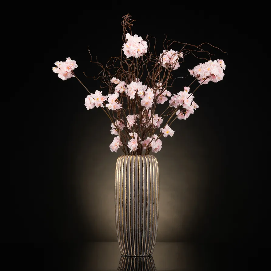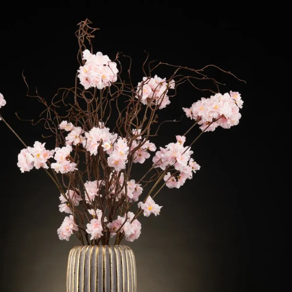 Bloemstuk Perle straalt elegantie en zachtheid uit. De frisse roze bloesems, gecombineerd met speelse krulwilg takken, vormen een luchtig geheel in deze mooie vaas. Een subtiele en stijlvolle toevoeging aan elk interieur!